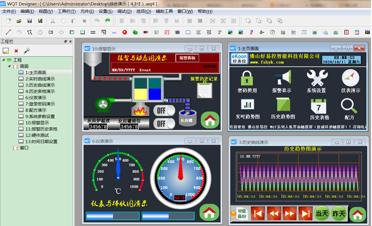 WQT Designer支持多種組態(tài)元件(控件)。