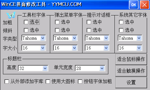 獨(dú)家提供WinCE界面修改工具,修改界面更適合觸摸操作或者鼠標(biāo)操作,或用于添加其它的Windows的字體;
